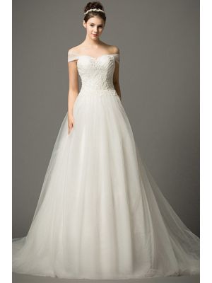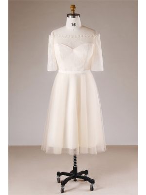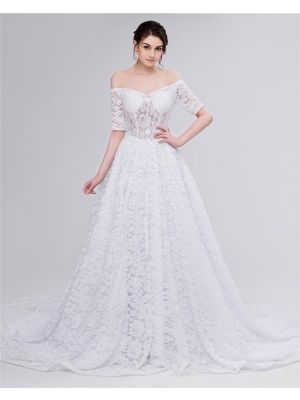 - A Line Off The Shoulder Short Sleeve Tulle Lace Wedding Dress Without Trainwas $895.00 Special Price $195.00