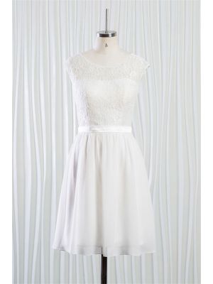 - A Line Round Neck V Back Short Lace Chiffon Beach Wedding Dress With Sashwas $400.00 Special Price $88.00