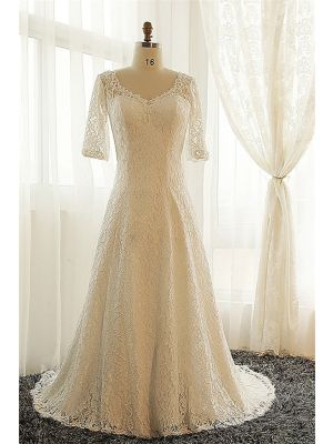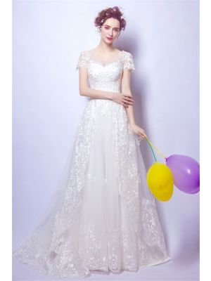 - A Line Short Sleeve Floor Length Corset Back Lace Wedding Dress Without Trainwas $1,047.00 Special Price $205.00