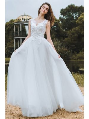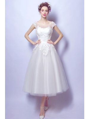 - A Line Scoop Neck Tea Length Tulle Lace Outdoor Wedding Dresswas $500.00 Special Price $119.00