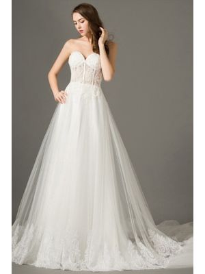 - A Line Sweetheart Tulle Lace See Through Wedding Dress Chapel Trainwas $1,400.00 Special Price $250.00