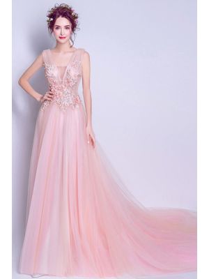 - A Line V Neck Light Pink Tulle Pearl Beaded Wedding Dress Corset Backwas $700.00 Special Price $150.00
