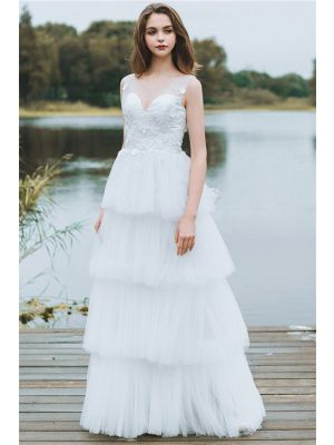- Beautiful A Line V Neck And Back Lace Tulle Tiered Wedding Dresswas $1,010.00 Special Price $210.00