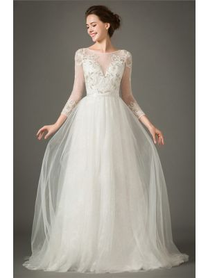 - Adorable A Line Scalloped Neckline 3 4 Sleeve Lace Tulle Wedding Dresswas $1,080.00 Special Price $217.00