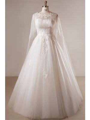- A Line Scoop Neck Long Sleeve Tulle Lace Plus Size Wedding Dress Corset Back Chapel Trainwas $950.00 Special Price $189.00
