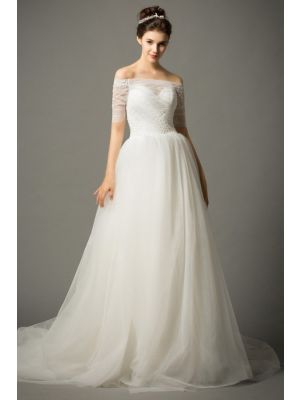 - A Line Off The Shoulder Tulle Lace Sleeve Wedding Dress Without Trainwas $1,140.00 Special Price $205.50