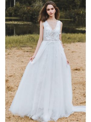 - Flowing A Line V Neck Low Back Tulle Flower Bohemian Wedding Dresswas $950.00 Special Price $192.00