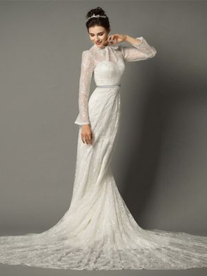 - Sheath High Neck With Collar Long Sleeve Lace Wedding Dress Chapel Trainwas $1,150.00 Special Price $240.00