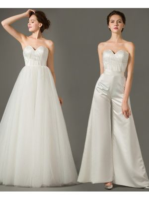 - Unique Sweetheart Satin Tulle Two In One Wedding Jumpsuit Dress Detachable Skirtwas $1,300.00 Special Price $250.00