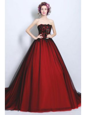 - Ball Gown Strapless Tulle Lace Black And Red Gothic Wedding Dress Cathedral Trainwas $1,240.00 Special Price $220.00