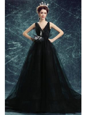- Ball Gown Off The Shoulder Gothic Black Tulle Ruffle Wedding Dresswas $900.00 Special Price $194.00