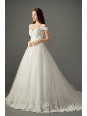 - Princess Ball Gown Off The Shoulder Tulle Lace Wedding Dress Chapel Trainwas $1,050.00 Special Price $247.00