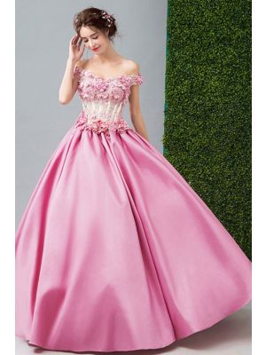 - Fairy Ball Gown Off The Shoulder Pink Satin Petal Wedding Dress Bow Corset Backwas $950.00 Special Price $189.00