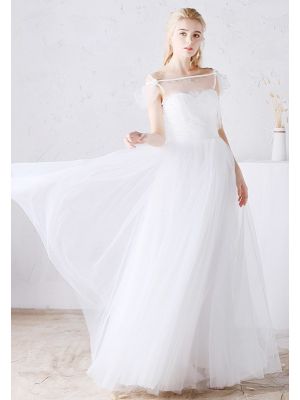 - Adorable Bateau Illusion Neckline Tulle Outdoor Boho Wedding Dress With Slitwas $780.00 Special Price $175.00