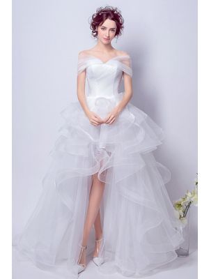 - Adorable Off The Shoulder High Low Tulle Ruffle Wedding Dress With Trainwas $795.00 Special Price $188.00