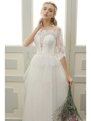 - Chic Illusion Neckline Tulle Lace Sleeve Peplum Boho Wedding Dresswas $975.00 Special Price $189.50