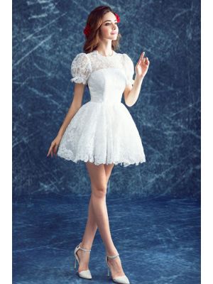 - Cute High Neck Puff Sleeve Vintage Lace Short Garden Beach Wedding Dresswas $420.00 Special Price $120.00