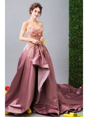 - High Low Strapless Sweetheart Dusty Rose Satin Applqiue Wedding Dress Long Trainwas $940.00 Special Price $245.00