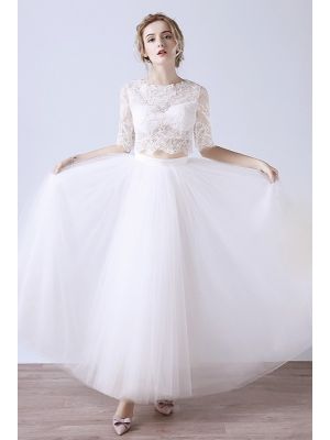 - High Neck Lace Sleeve Tulle Outdoor Garden Boho Two Piece Wedding Dresswas $980.00 Special Price $199.00
