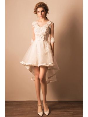 - Informal Illusion Neckline Sheer Sleeve High Low Outdoor Beach Wedding Dresswas $650.00 Special Price $144.00