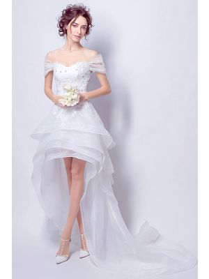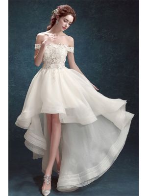 - Informal Off The Shoulder High Low Lace Organza Outdoor Beach Wedding Dresswas $900.00 Special Price $155.00