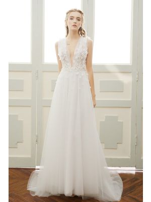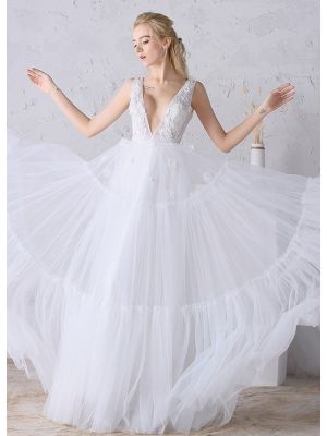 - V Neck Low Back Tulle Lace Tulle Flowing Boho Wedding Dress Crystals Sashwas $1,085.00 Special Price $195.00