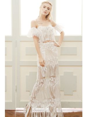 - Sexy Spaghetti Strap Lace Fringe Tiered Boho Two Piece Wedding Dresswas $1,145.00 Special Price $220.00