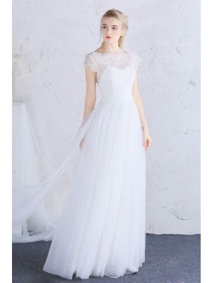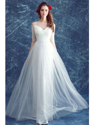 - Sheath Illusion Neckline Half Sleeve Tulle Outdoor Beach Flowing Wedding Dresswas $620.00 Special Price $165.00