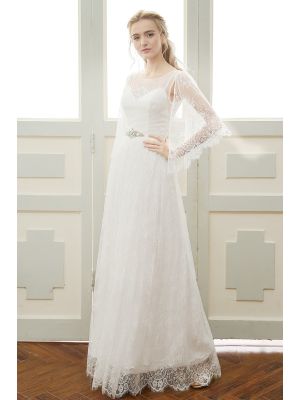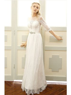 - Sheath Round Neck Lace Sleeve Boho Outdoor Garden Wedding Dress Crystals Sashwas $1,145.00 Special Price $208.50