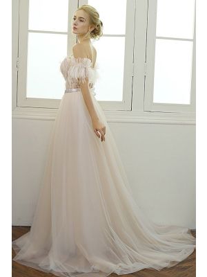 - Sweetheart Off The Shoulder Tulle Feather Wedding Dress With Crystals Sashwas $1,142.00 Special Price $185.00