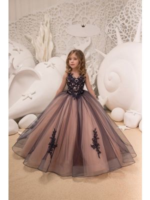 - Princess Ball Gown V Neck Dusty Rose Tulle Flower Girl Dress With Navy Blue Appliqueswas $536.00 Special Price $125.00