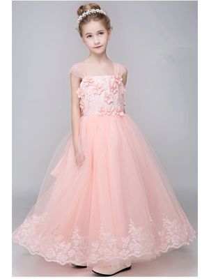 - A Line Blush Pink Tulle Lace Flower Girl Dress With Cap Sleeve Straps Bowwas $380.00 Special Price $92.77