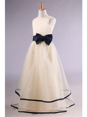 - A Line Champagne Satin Tulle Navy Blue Sash Flower Girl Dresswas $310.00 Special Price $77.00