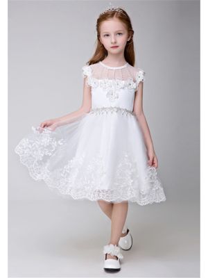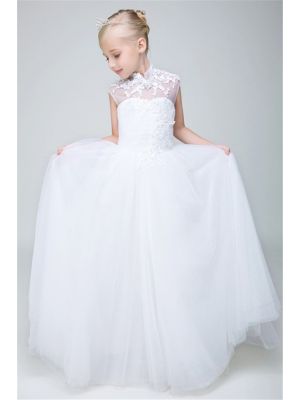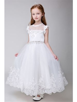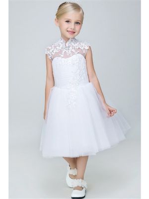 - A Line High Neck Cap Sleeve Tea Length Tulle Lace Flower Girl Dresswas $345.00 Special Price $89.00