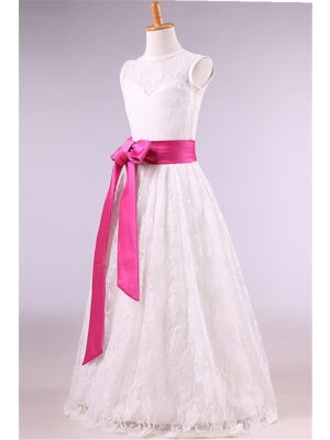 - A Line High Neck Lace Flower Girl Dress With Hot Pink Sashwas $330.00 Special Price $91.69
