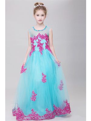 - A Line Illusion Neckline Aqua Tulle Hot Pink Lace Girl Pageant Prom Dresswas $470.00 Special Price $107.45