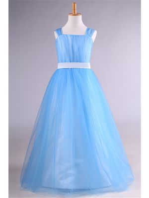 - A Line Light Blue Tulle Flower Girl Dress With Sash Strapswas $250.00 Special Price $72.00