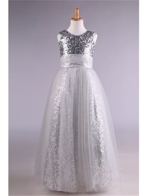 - A Line Scoop Neck Silver Sequin Tulle Girl Party Prom Dresswas $410.00 Special Price $99.00