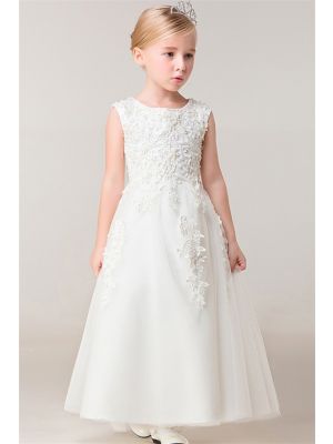- A Line Scoop Neck Tea Length Tulle Lace Pearl Beaded Flower Girl Dresswas $430.00 Special Price $107.00