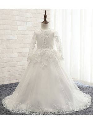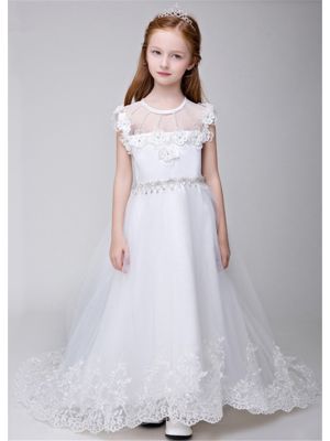 - A Line Scoop Neck Tulle Lace Pearl Beaded Flower Girl Dress With Trainwas $500.00 Special Price $125.00