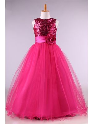 - Ball Gown Hot Pink Tulle Sequin Little Girl Prom Dress With Flowerwas $420.00 Special Price $98.50
