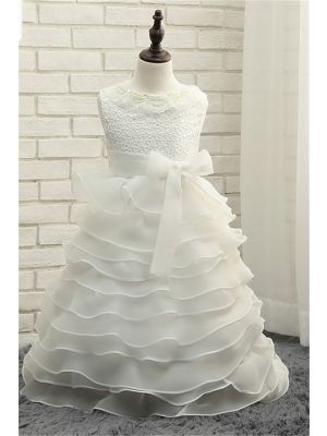 - Ball Gown Pearl Neckline Organa Ruffle Tiered Lace Flower Girl Dress With Bowwas $400.00 Special Price $120.00