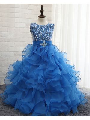 - Ball Gown Round Neck Royal Blue Organza Ruffle Beaded Girl Prom Dresswas $485.00 Special Price $127.00