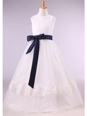 - Ball Gown Round Neck Tulle Lace Flower Girl Dress With Navy Sashwas $395.00 Special Price $72.50