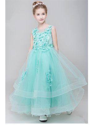 - Ball Gown Scoop Neck Mint Green Tulle Applique Flower Girl Dresswas $380.00 Special Price $89.00
