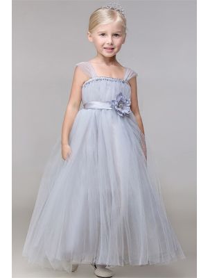 - Cute Puffy Silver Tulle Flower Girl Dress With Straps And Sashwas $280.00 Special Price $59.39