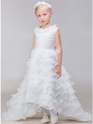 - High Low Organza Ruffle Tiered Little Girl Wedding Dress With Trainwas $500.00 Special Price $129.00