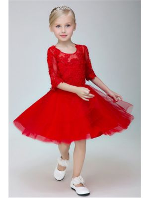 - Lovely A Line Scoop Neck Red Tulle Lace Little Girl Dress With Sleeveswas $290.00 Special Price $92.00