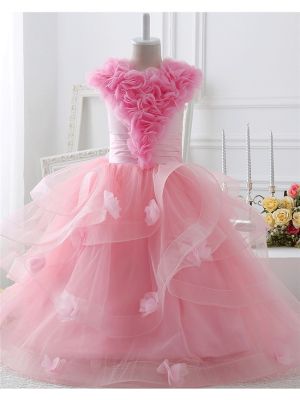 - Ball Gown Illusion Neckline Light Pink Tulle Ruffle Lace Flower Girl Dresswas $370.00 Special Price $89.00